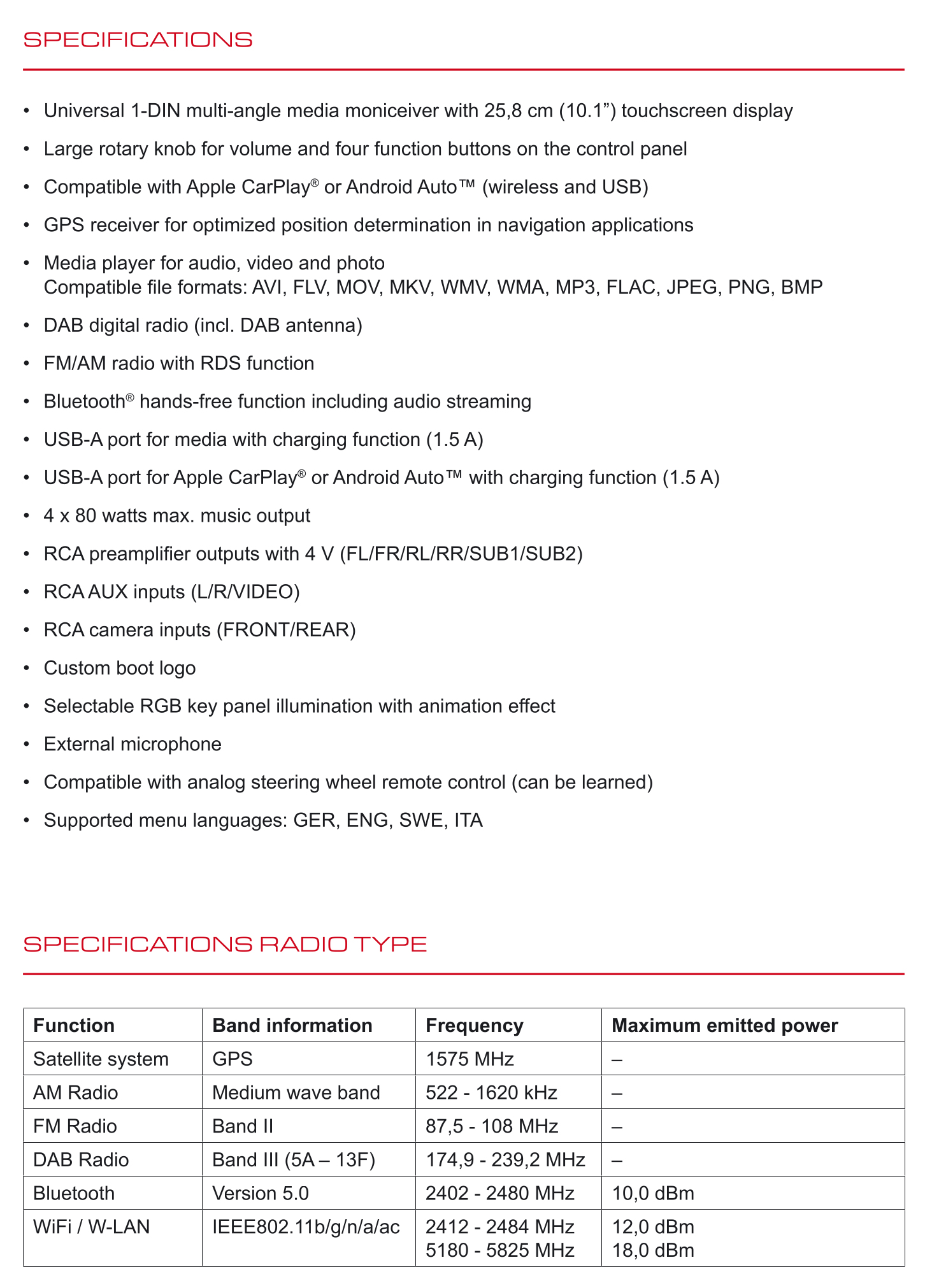 Radio digitale DAB/DAB+, Bluetooth e USB, equalizzatore integrato