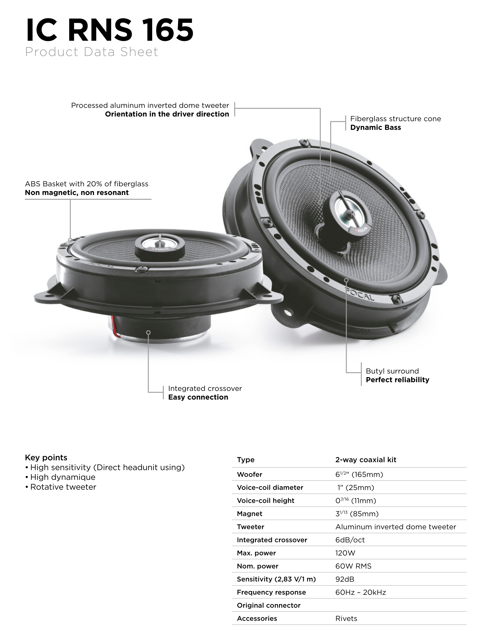 FOCAL INSIDE IC RNS 165 Coppia Coassiali per Renault – Dacia – Nissan