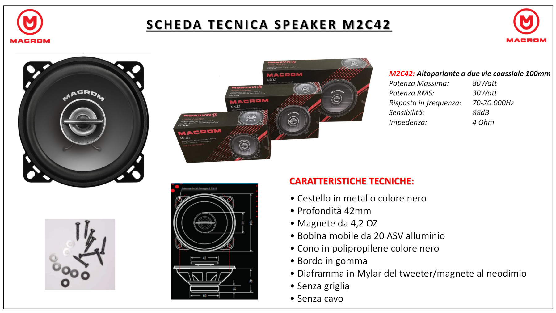 Il cono in Polipropilene e la sospensione in gomma forniscono un SPL elevato e una risposta estesa alle basse frequenze, per ottenere un suono ricco quando pilotato dall’unità principale OEM.