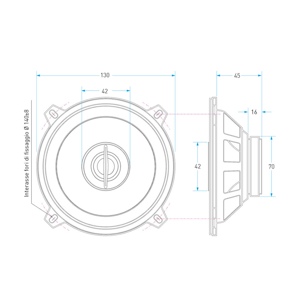 Kit completo composto da coppia coassiali a 2 vie da 16,5 cm e coppia coassiali a 2 vie da 13 cm